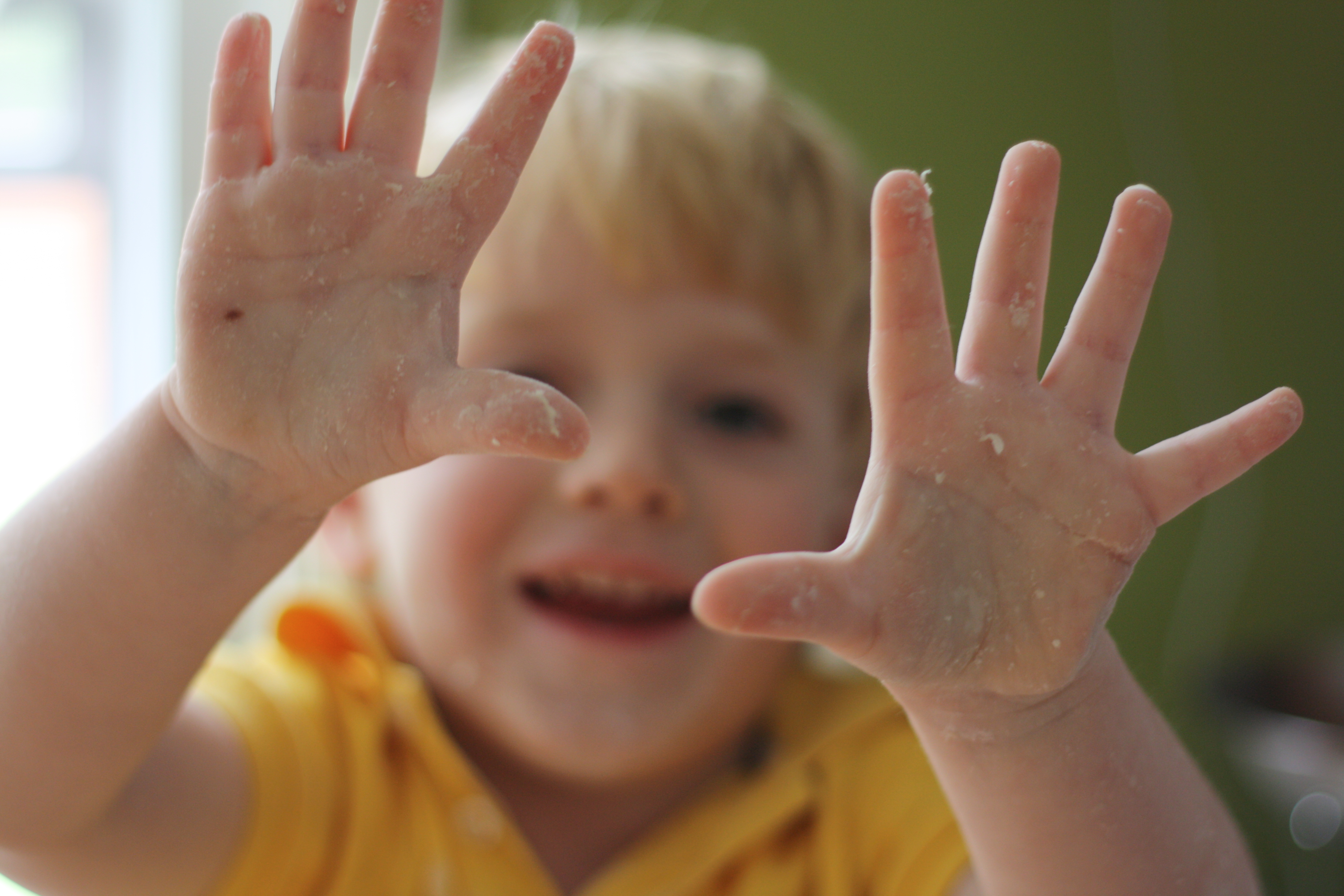 As directed, I added the remaining flour/salt mixture and began kneading the dough. It was much stickier than I’d anticipated. My three year old asked me why I was so angry at “that thing”.