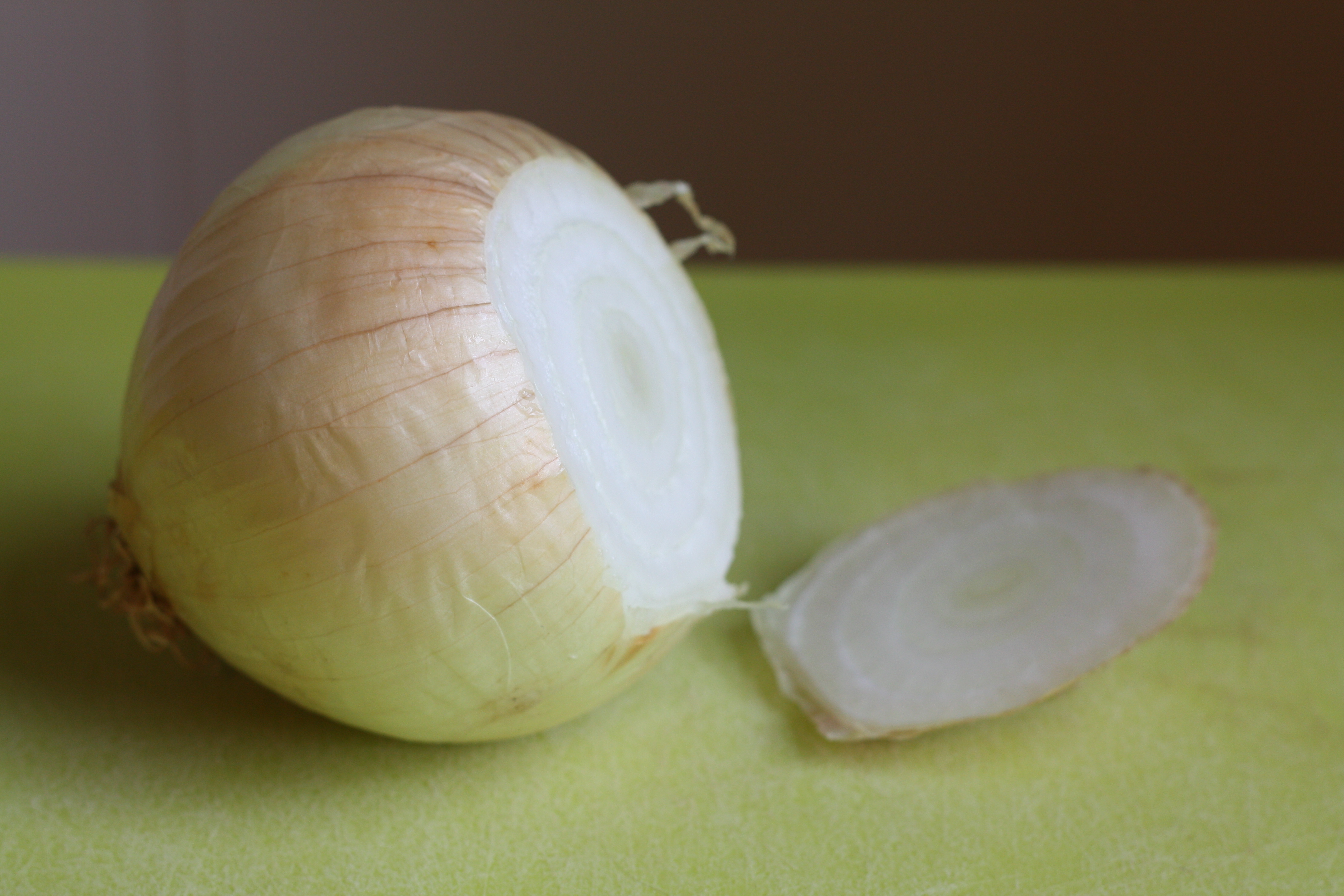 Here’s a handy procedure for chopping an onion, which makes the process fast and easy. It also reduces the likelihood of painful onion tears by locking in most of the fluids during the cutting process. Keeping the root intact throughout cutting helps hold the onion together, making it easier to manage.