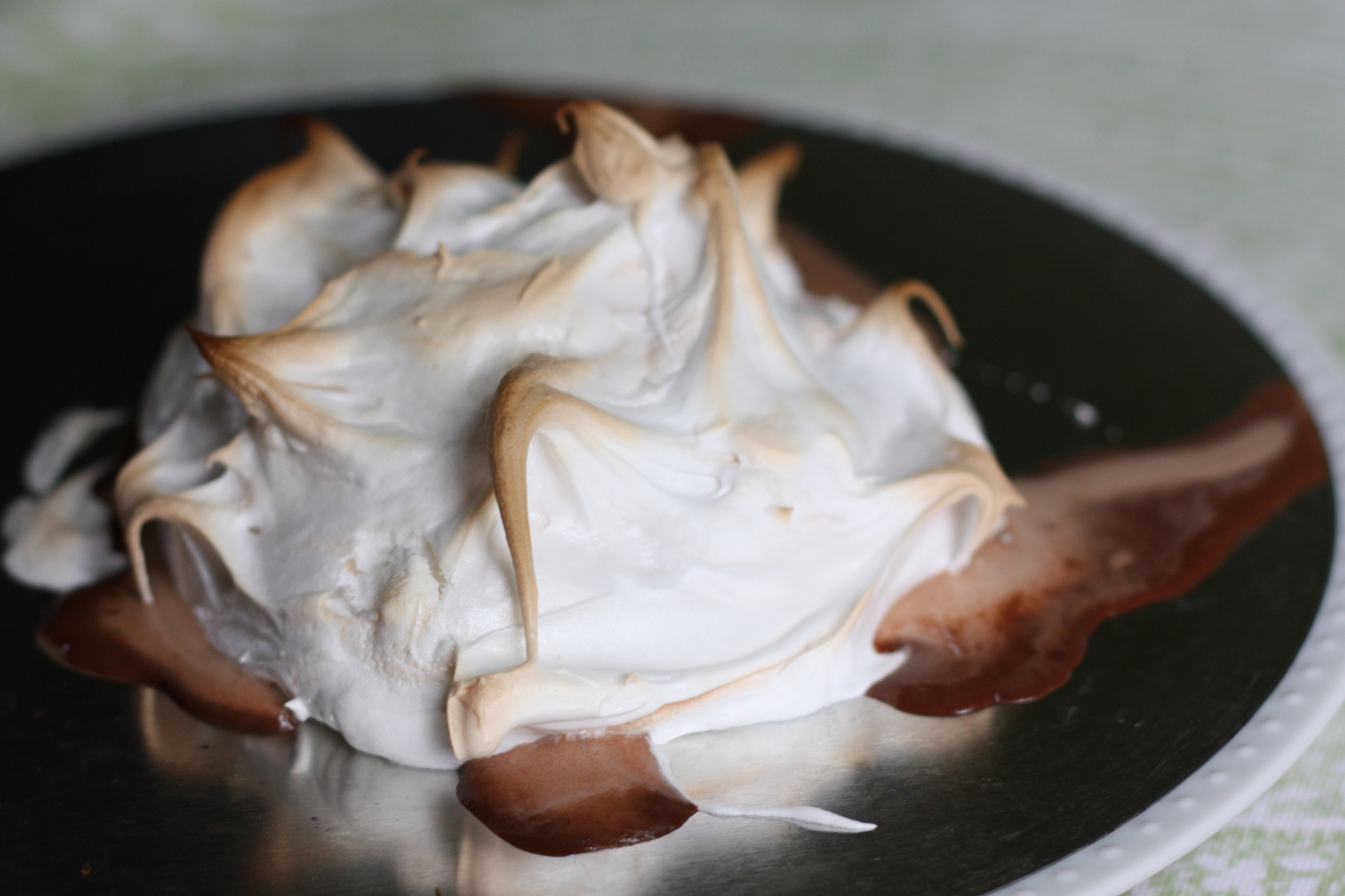 This afternoon, I did a little test run for my Baked Alaska endeavor, using a piece of bread, a scoop of ice cream, and a bit of meringue. I was optimistic at first. It came together nicely and looked good in the oven for the first minute or two. But, things started going downhill rapidly after that. At first, I spied a bit of ice cream breaching the perimeter of meringue.Then, the floodgates opened and ice cream began leaking all around. It’s in the freezer right now, awaiting a culinary autopsy.