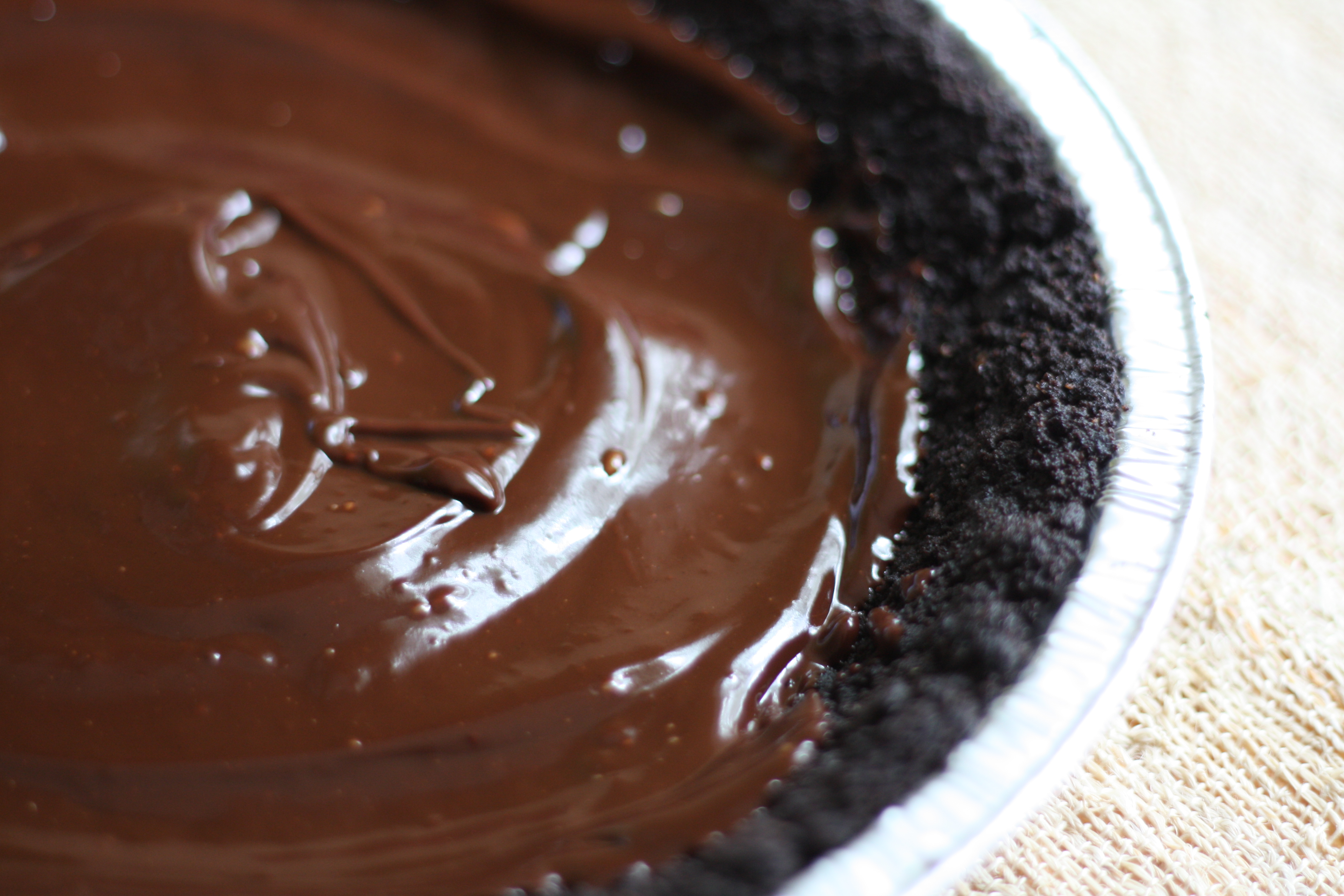Place the chocolate in a bowl. Heat the cream, until it just begins to boil. Pour the hot cream over the chocolate and stir until the chocolate completely melts. Pour the warm ganache into the pie crust.