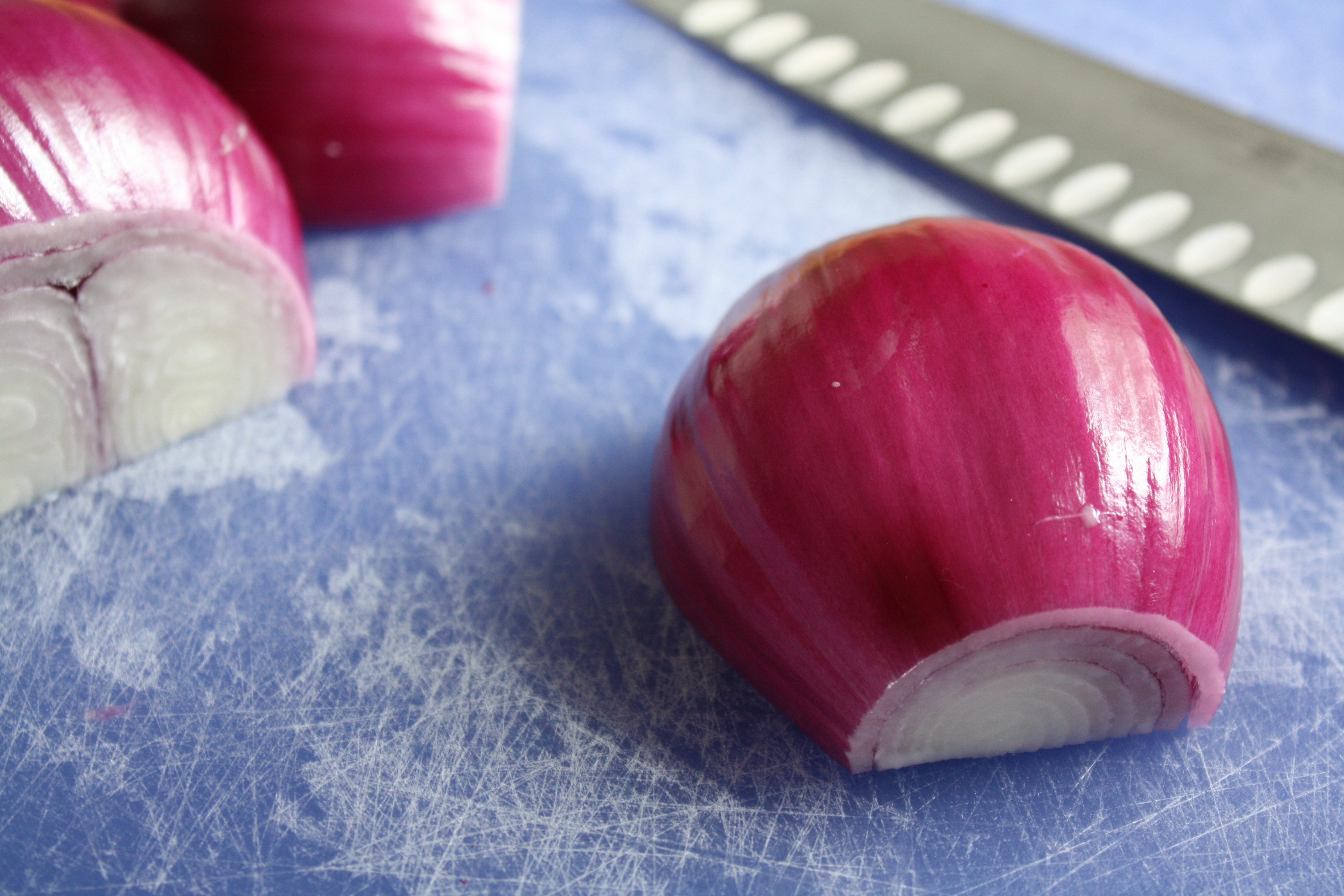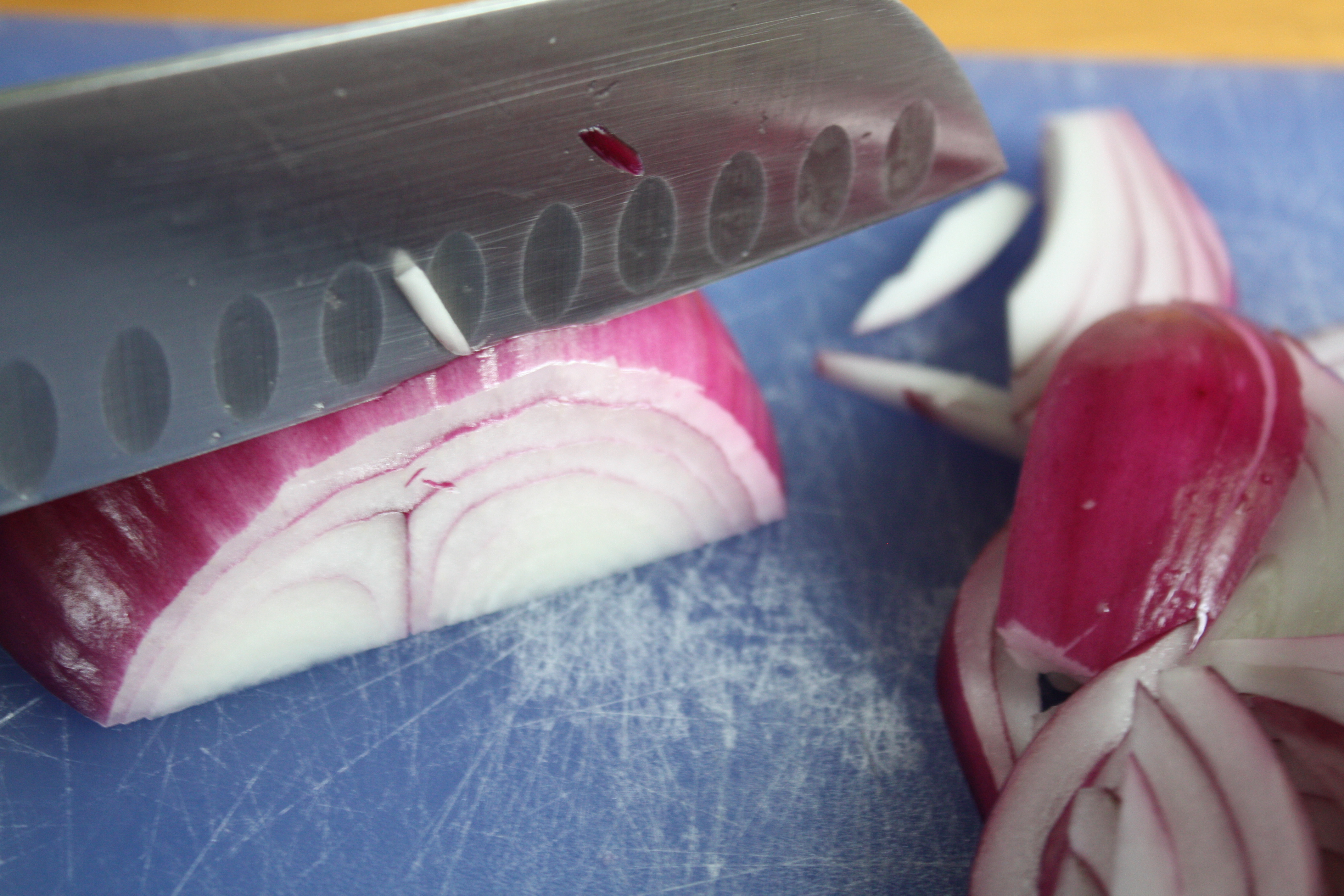 Do NOT cut the onion into half-rings. Onion cut in this manner will fall apart during cooking.