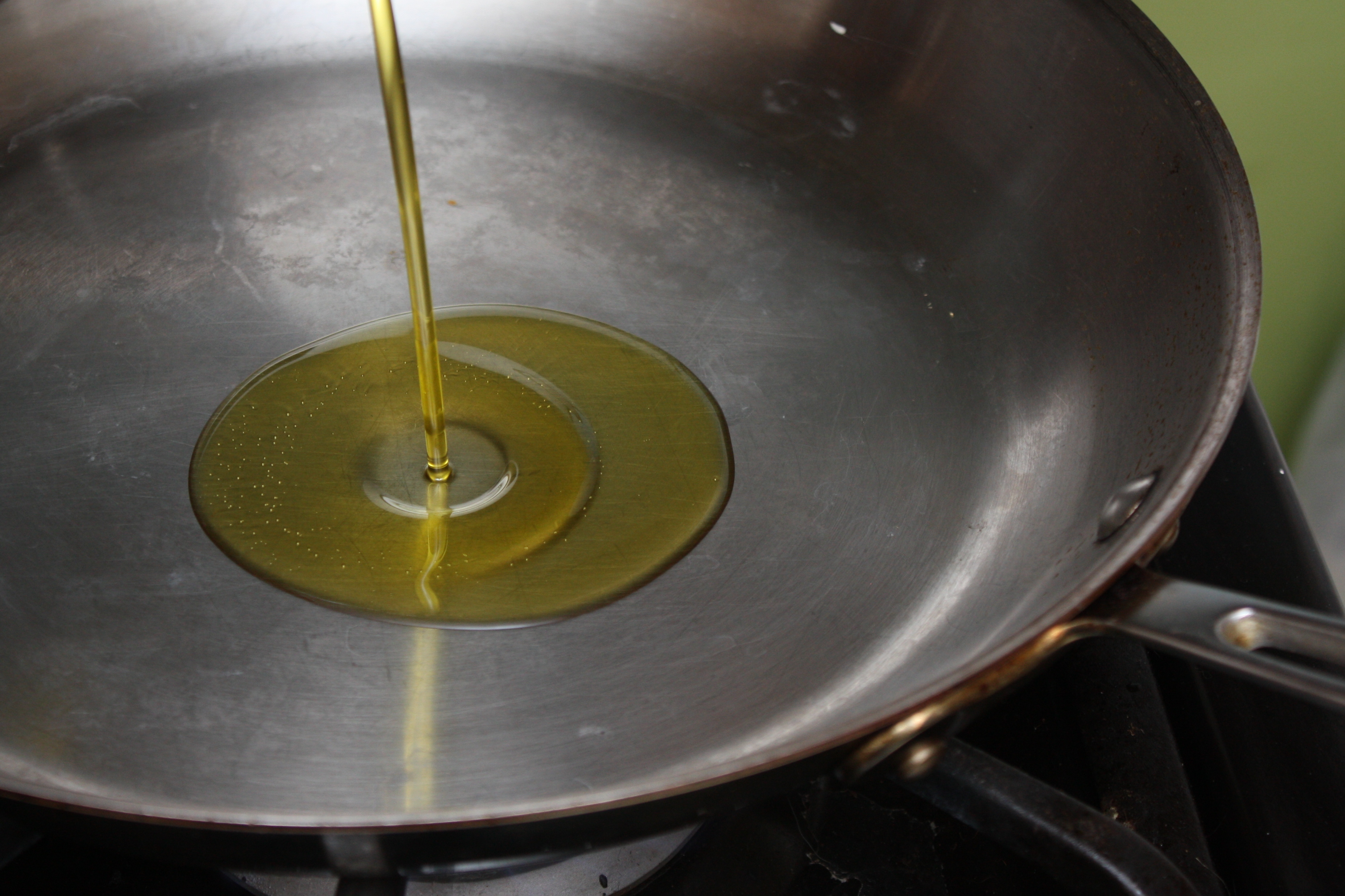 Put a couple tablespoons of oil or butter into a pan. Heat over medium heat.