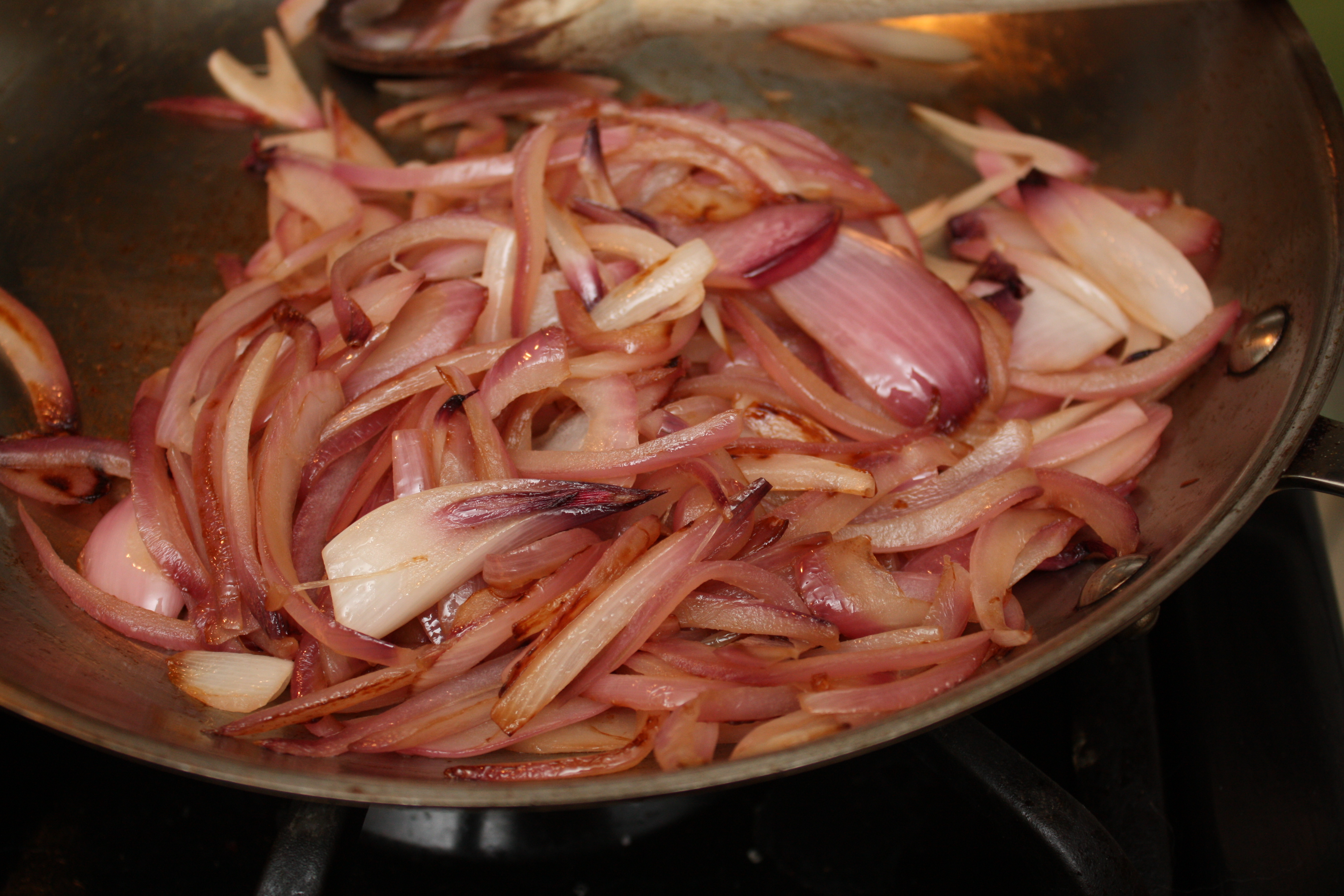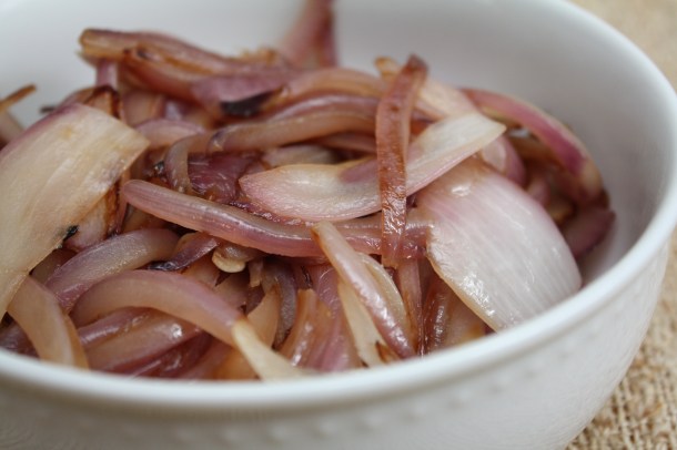 Caramelized onions are onions which have been cooked slowly to develop and caramelize the onion’s sugars. They have a very sweet, mild onion flavor, which tastes delicious on burgers, tarts, sandwiches, pizzas, salads, and steak, amongst other things. They make the best base for French Onion Soup. Heck, I’d even put them on ice cream! You can caramelize any type of onion or even shallots. Here’s a step by step guide for making caramelized onions.