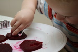 Little chef is adorable….great idea to have kids help out with the beets….