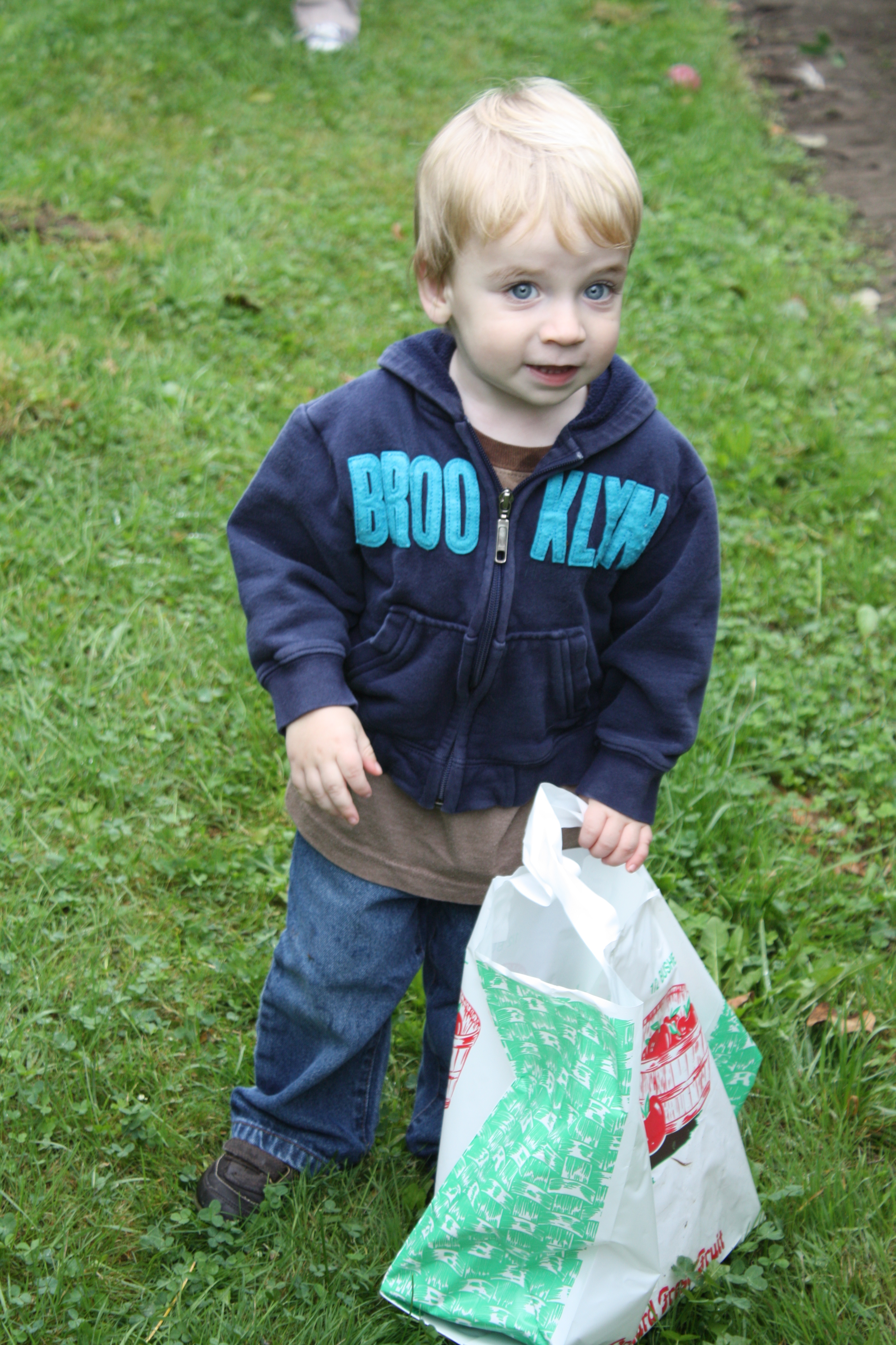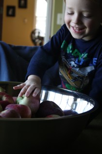 This past weekend, we took the boys apple-picking. As I’ve mentioned after our berry picking excursions, the boys are highly skilled fruit pickers. The looks of concentration on their faces, as they go about their work, is priceless. And we always end up with far more fruit than we needed.