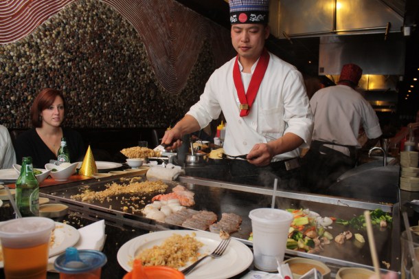 Last weekend, my siblings and I planned a sneak attack on our mom, to surprise her for a birthday of some significance. With the greatest of stealth, we traveled to our hometown and gathered at Hotoke, a Japanese steakhouse style restaurant, which specializes in hibachi entrees and sushi. Our coup was a grand success. The birthday girl was beyond surprised, the food was delicious, and the laughs were plentiful. It was a fantastic evening.