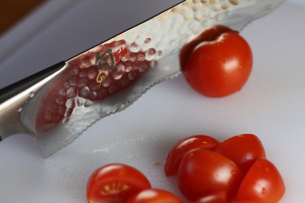 The object of my affection was a knife in Shun’s newest Edo line of knives, sold exclusively at Williams-Sonoma. Gorgeous hammered steel detailing, samurai sword sharpness, perfectly balanced weight; not only a precision cutting tool, but a beautiful work of art. The 8″ Dual-Density Utility knife, with its high and low frequency serrations, whispered sweet nothings at me through the window. I was so easily wooed; so fully enamored. Were it not for its mind-numbing price tag and the knowledge that airport security would never have allowed me to gingerly carry my new love on board, I would have purchased that knife on the spot. Alas, I left empty-handed with a razor-sharp hole in my heart and the salty remnant of a single tear run down my cheek.