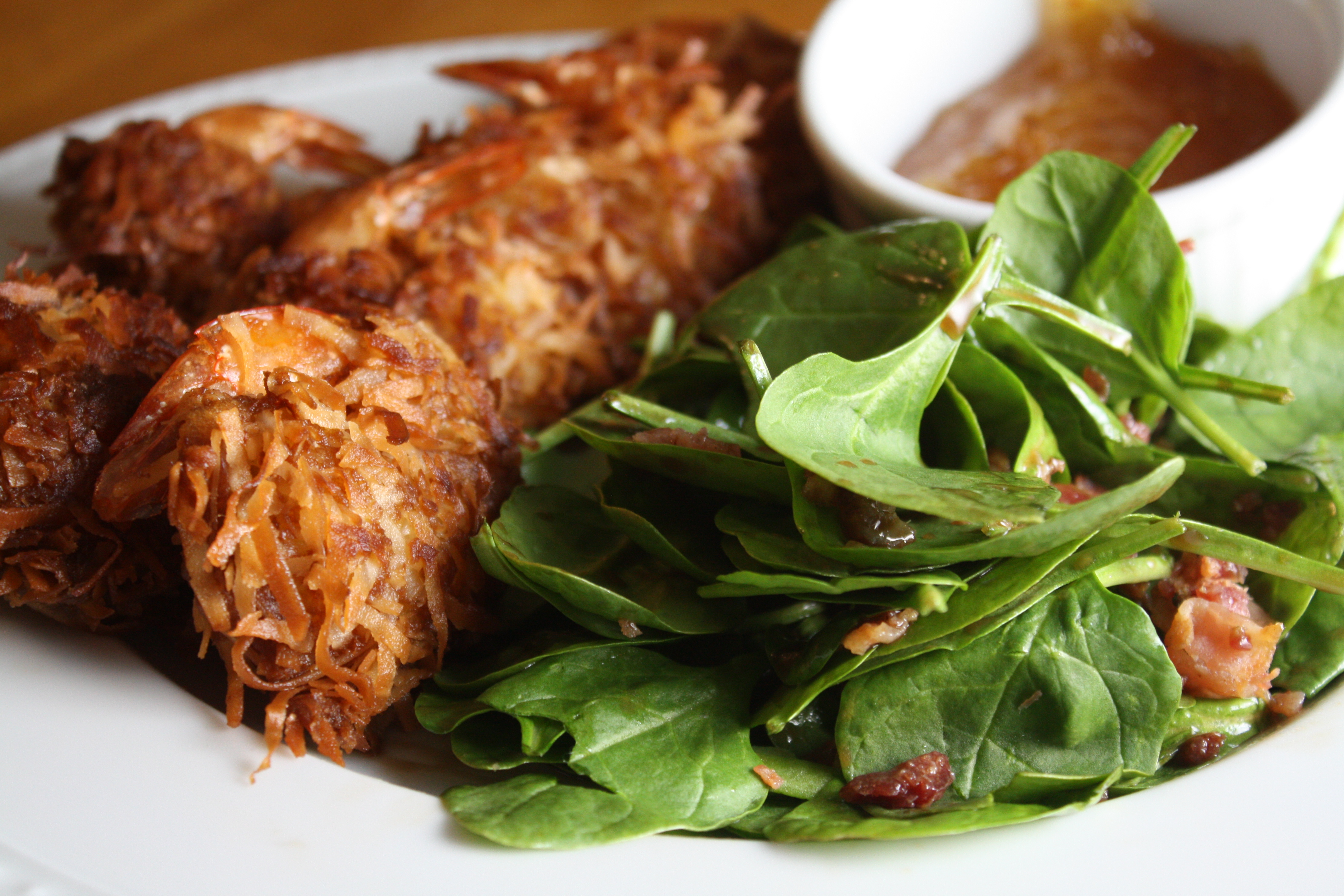 Serve the shrimp with a simple baby spinach and bacon salad, dressed in a honey balsamic vinaigrette.