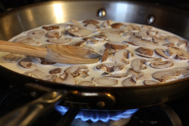 Today’s recipe is brought to you by the letter P. This meal started out with a general plan for Pasta in a Parmesan cream sauce with Prosciutto. Inspired by the natural alliteration in this simple dinner idea, I figured we may as well make it Penne Pasta and throw in a few Portabella mushrooms and Peas for good measure. Dinner by the letter P.
