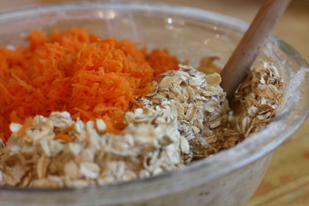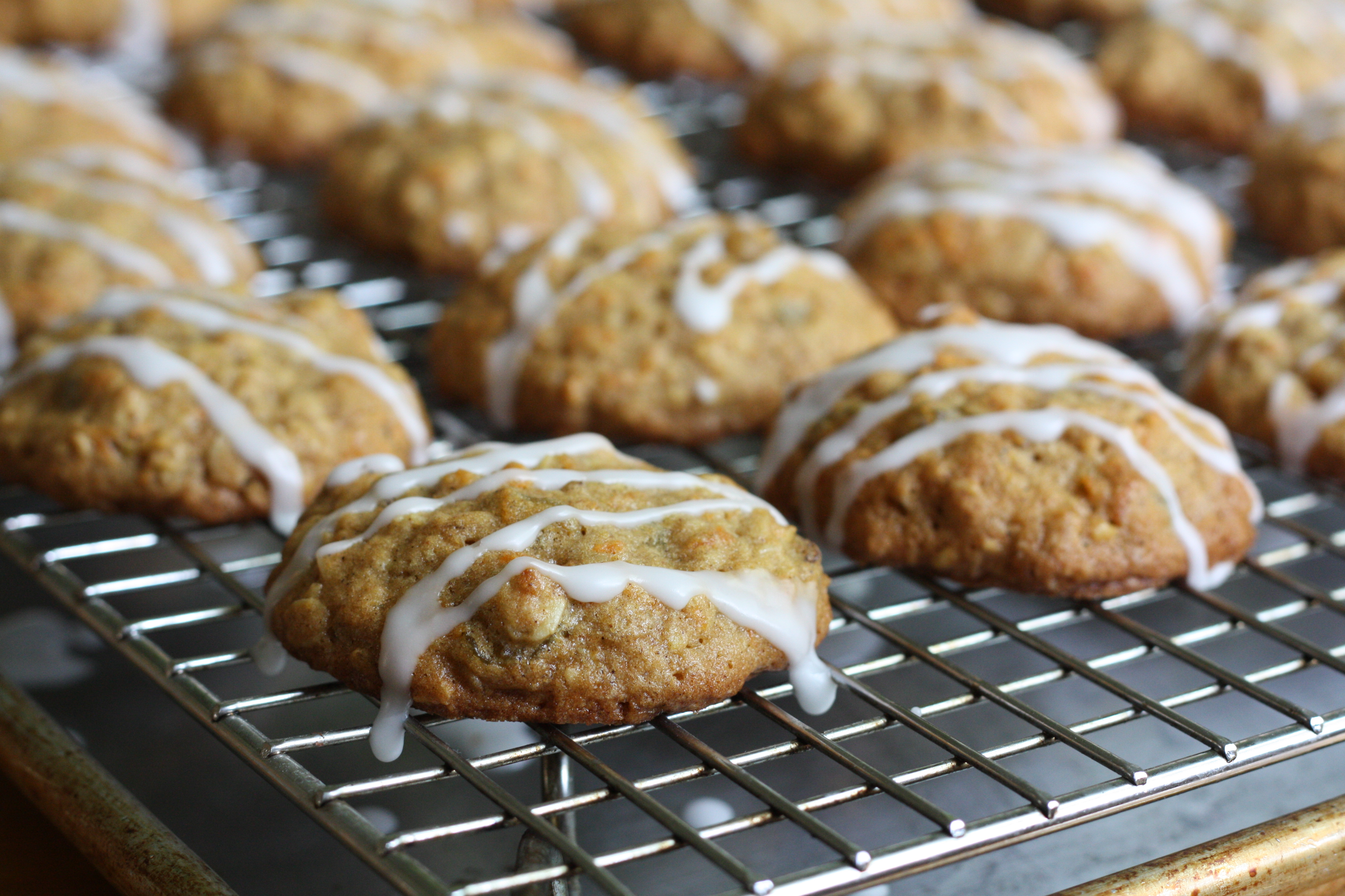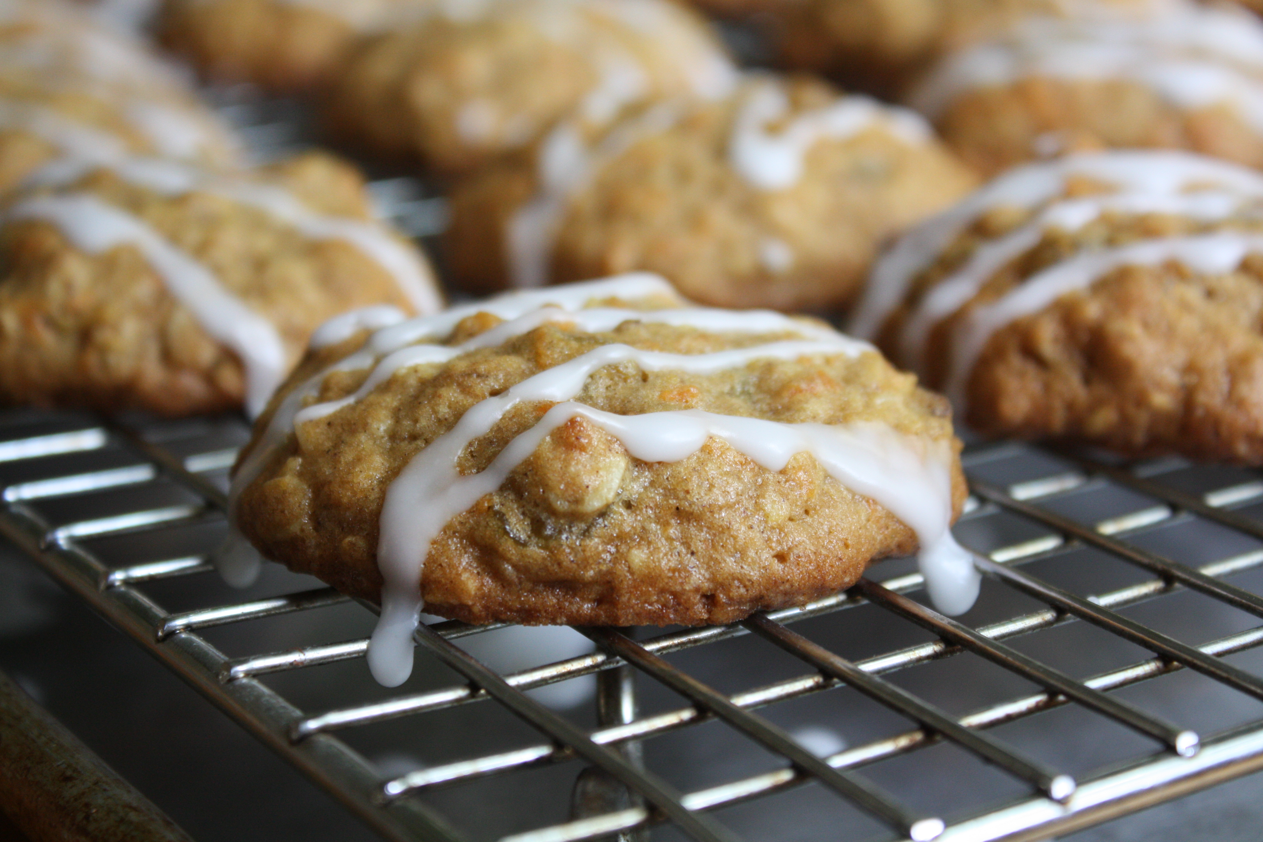 Hanging out alongside a tasty recipe for corn and bacon fritters and two separate grilled shrimp recipes were these cookies…carrot cake cookies. They’re sort of a cross between a chewy oatmeal raisin cookie and a slice of moist, delicious carrot cake. And they’re good! I made the first batch as a thank you gift for the midwives I saw throughout my pregnancy and a second batch for my son’s nursery school teachers. Who doesn’t love to receive homemade cookies as a gift?? And somewhere in between those two batches, I ate at least a dozen of these tender, sweet and spicy cookies myself. Mhmm…they’re yummy indeed!