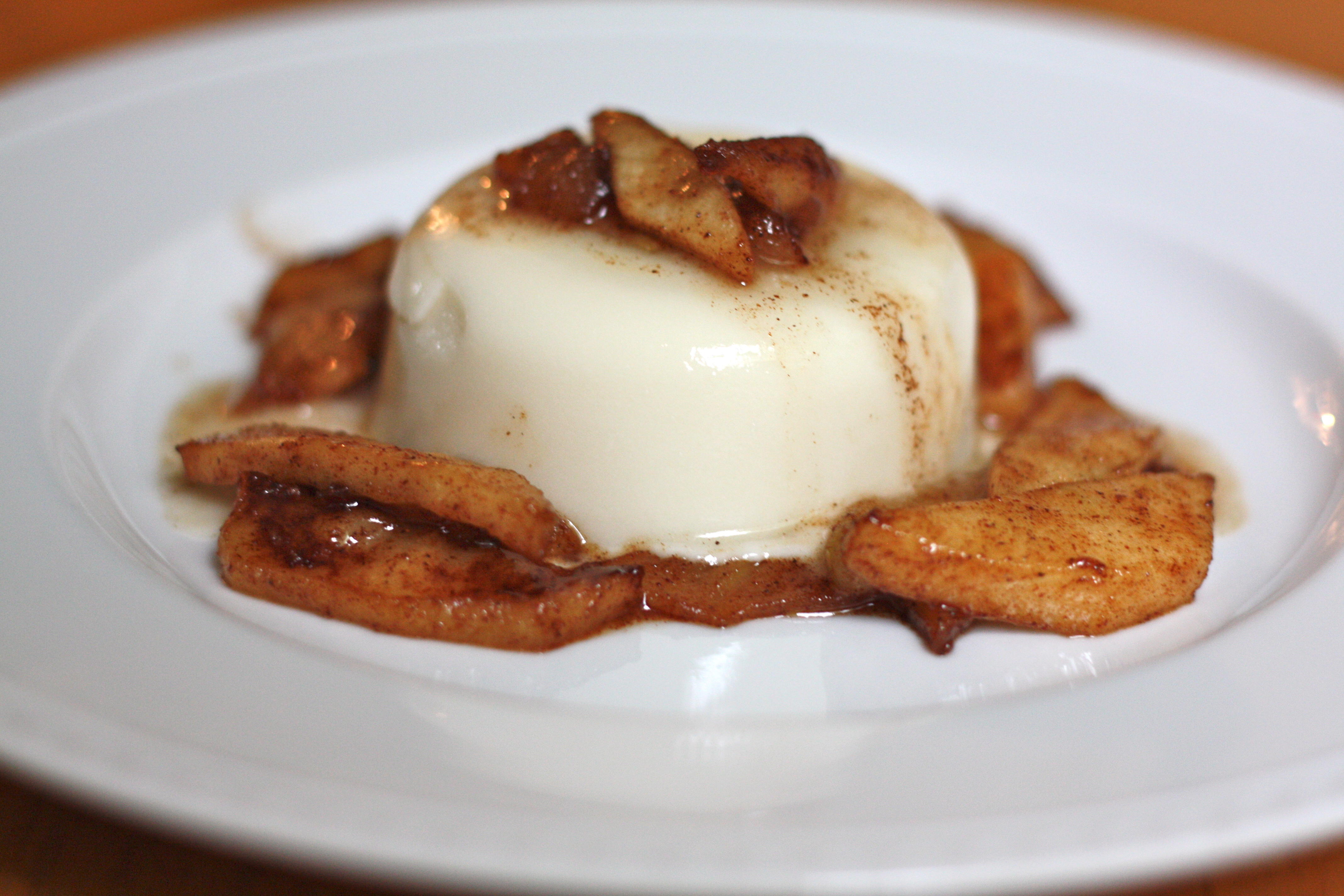 Serve in the dishes, topped with cinnamon apples (recipe below), or unmold to serve plated. To unmold, dip the bottom of the dishes into warm water for a few seconds. Use a knife to loosen the edges. Invert over your serving dish.