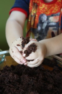 Once cool, crumble the cake into fine crumbs. This is a perfect job for little helpers.
