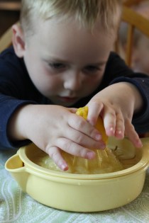 I belt out my battle cry and approach the snickering adversary. I take it in my hands and approach the piping hot oven. Not this time! Not this time! I place it in the oven and close the door.