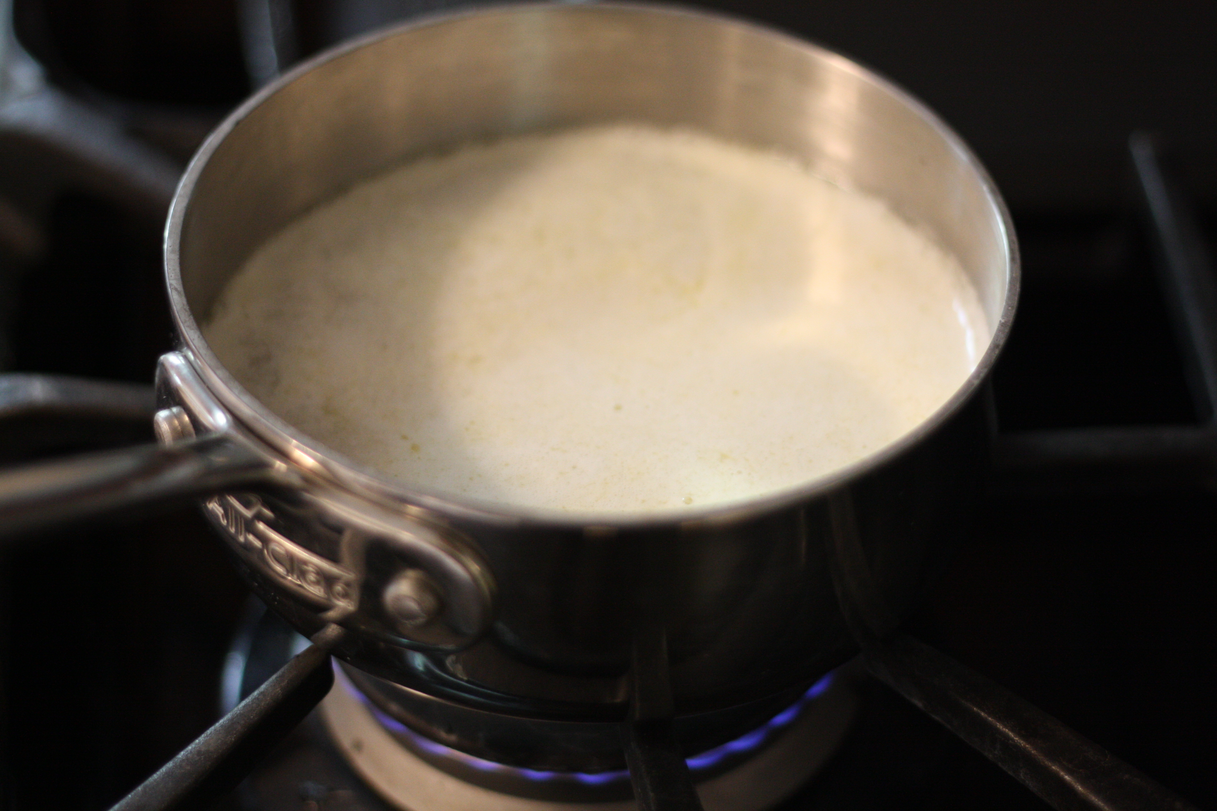 Add the cream and the zest. Bring to a gentle simmer, stirring constantly.