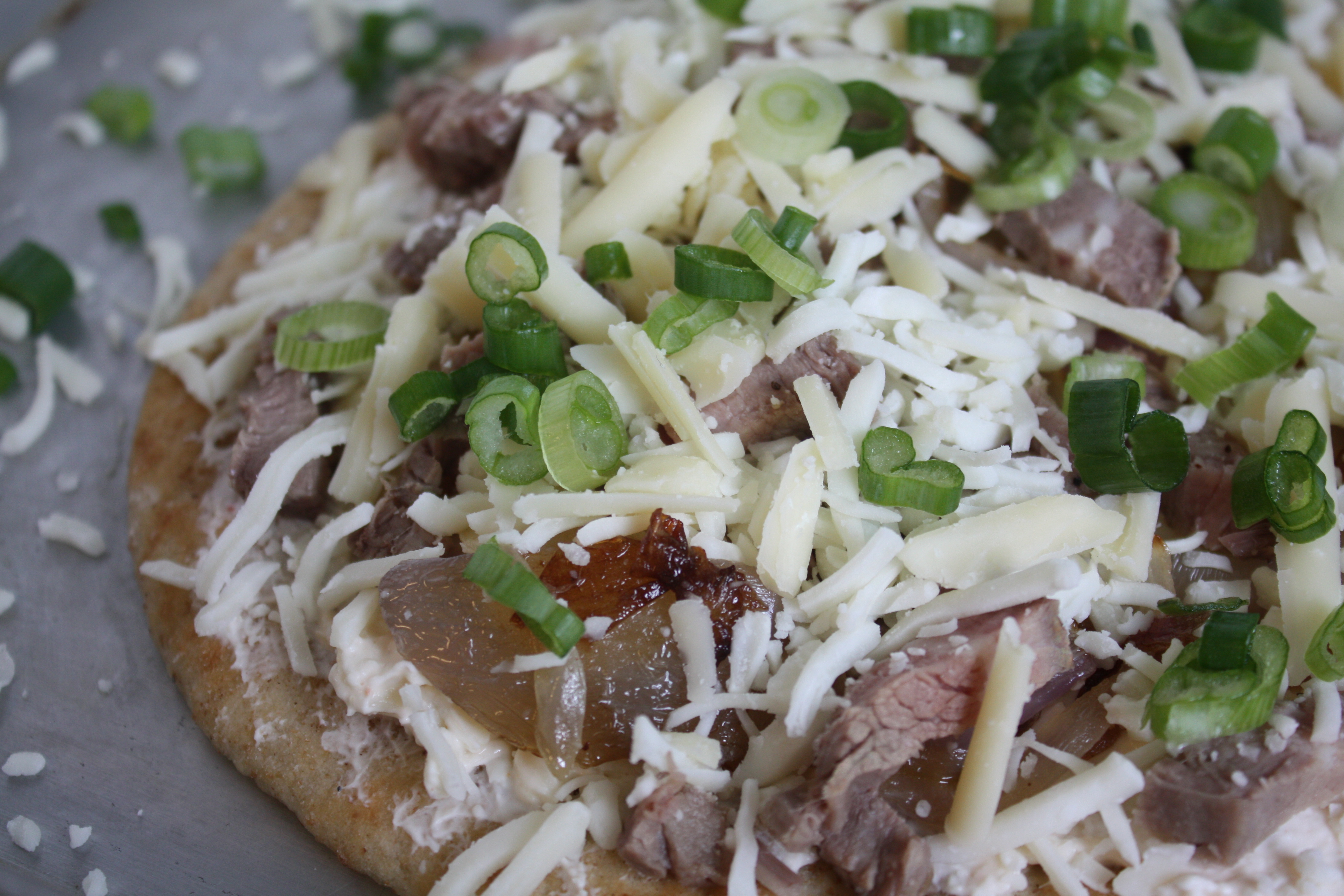 While the beef is cooking, prepare the onions and mushrooms.