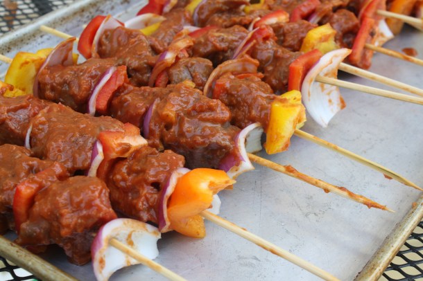 - 3 pounds lean stewing beef (cut into approximately 2″ chunks)