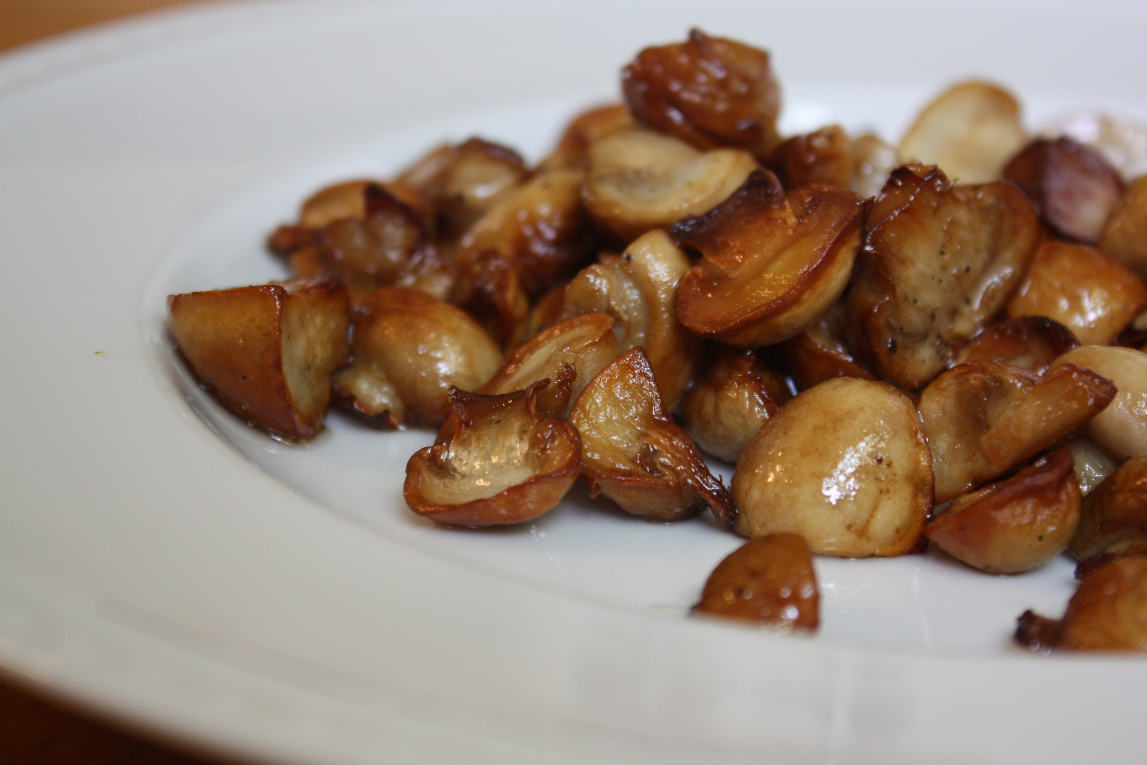 *The mushrooms will at first appear to absorb the melted butter, but will eventually release the butter and their own liquid. As the liquid evaporates, the mushrooms will acquire a golden brown color.