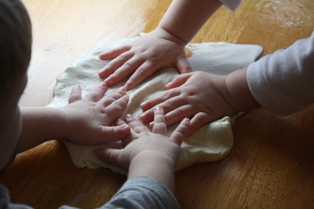 Typically, many yeast dough recipes begin by proofing the yeast. Proofing is simply a process of dissolving the yeast in lukewarm water. After a few minutes, the yeast should begin to foam, proving that it is alive and ready to work its leavening magic. If the yeast doesn’t foam, it’s time to buy some new yeast. The magic temperature for proofing yeast is somewhere between 110-115°F. To assure you’ve got the right temperature, it’s helpful to use an instant-read thermometer. I usually stick the thermometer in hot water from the tap, then wait until it reduces to the right range before adding the yeast.
