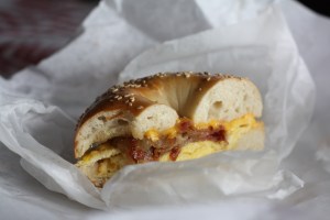 Recently, I made this bacon, egg, and cheese bagel casserole. It was inspired by a bag of bagels which my parents had brought up from Long Island. They’d been left unwrapped for a few days and had gone slightly stale. But as anyone who’s ever had a good Long Island or NYC bagel knows, it’s a crime to let them go to waste. So, I thought I’d try throwing them into a breakfast casserole, with a hefty dose of bacon, eggs, and cheese. The resulting casserole was a satisfying success; every bite with the flavor of a good Long Island/NYC bagel sandwich.