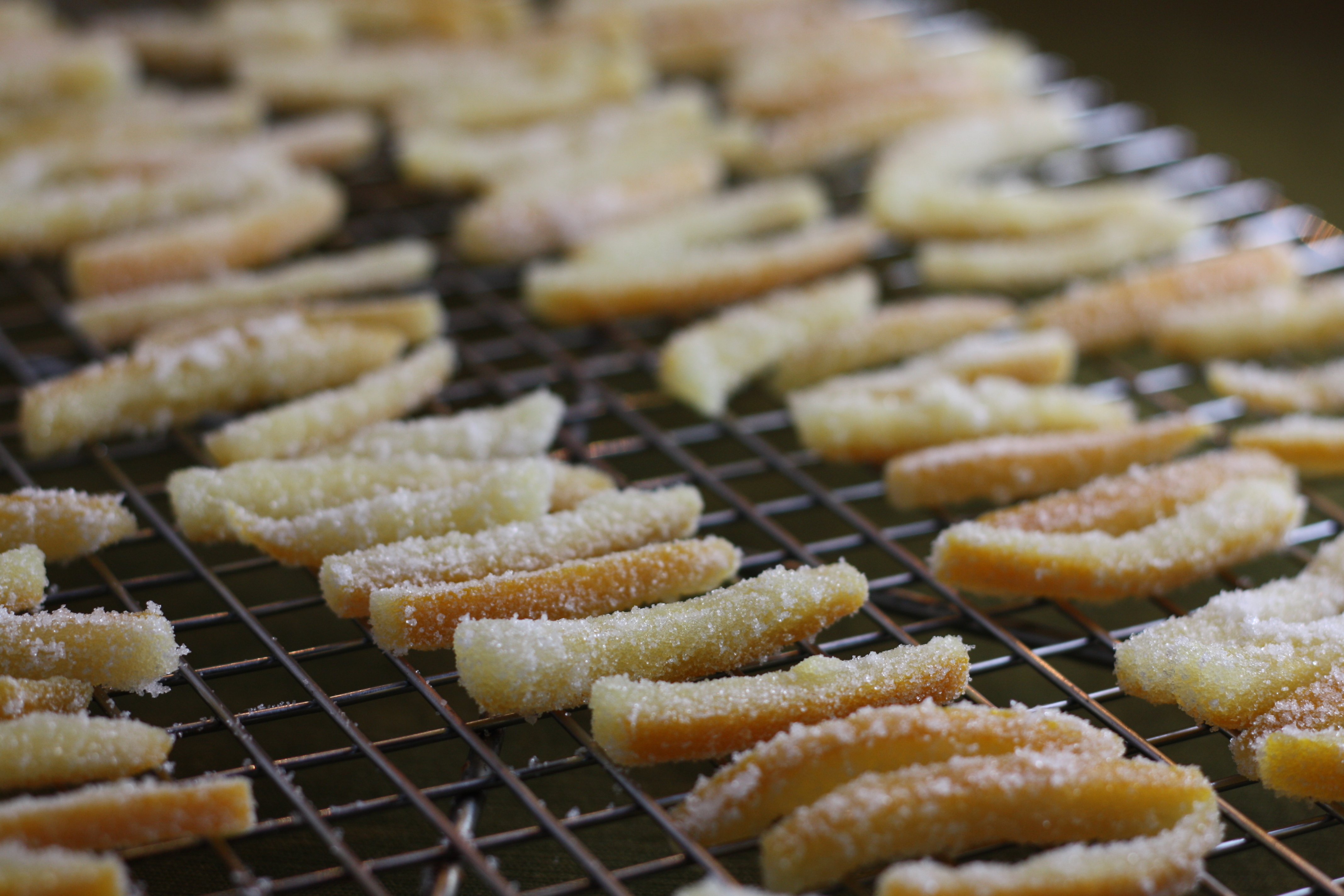 Orange chicken…I just adore the sticky sweet and slightly spicy sauce coating chunks of crispy chicken. As I planned the menu for this little ninja party, it seemed like the perfect fit for a big group of adults and young children. It’s a dish I’ve eaten often and made never. So, I did a bit of searching for a starting point. The big surprise for me was that some of the recipes contained not a bit of orange. No juice, no extract, no peel. Many recipes were more sugar than anything else. And though those recipes may be successful at reproducing the familiar orange chicken flavor from your favorite Chinese takeout restaurant, I just can’t come to grips with an orange chicken recipe made without orange. So, I played around a bit and came up with the recipe which follows. It’s pleasingly sweet, just a bit spicy, and packed with a good dose of authentic orange flavor. Prior to frying, the chicken is marinated in a soy-ginger-orange marinade, then dipped in egg, and coated with cornstarch. A simple sauce, made with orange juice and fresh zest is accented with Asian flavors then thickened to the consistency of a glaze with a bit of cornstarch. Definitely a crowd-pleaser!