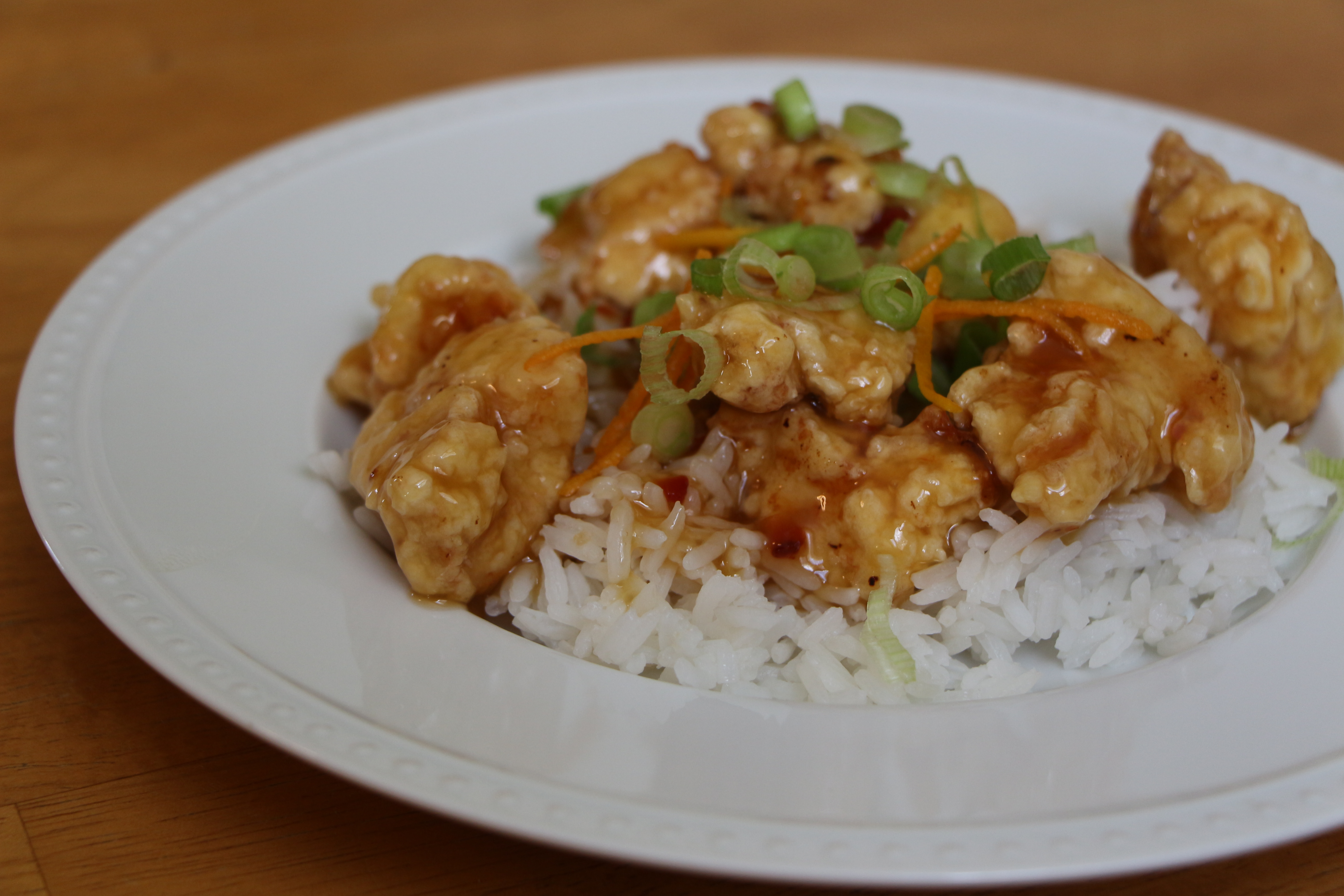 Just before serving, pour the sauce over the chicken. Garnish with sliced green onions and additional orange zest, if desired. Serve over white jasmine rice.