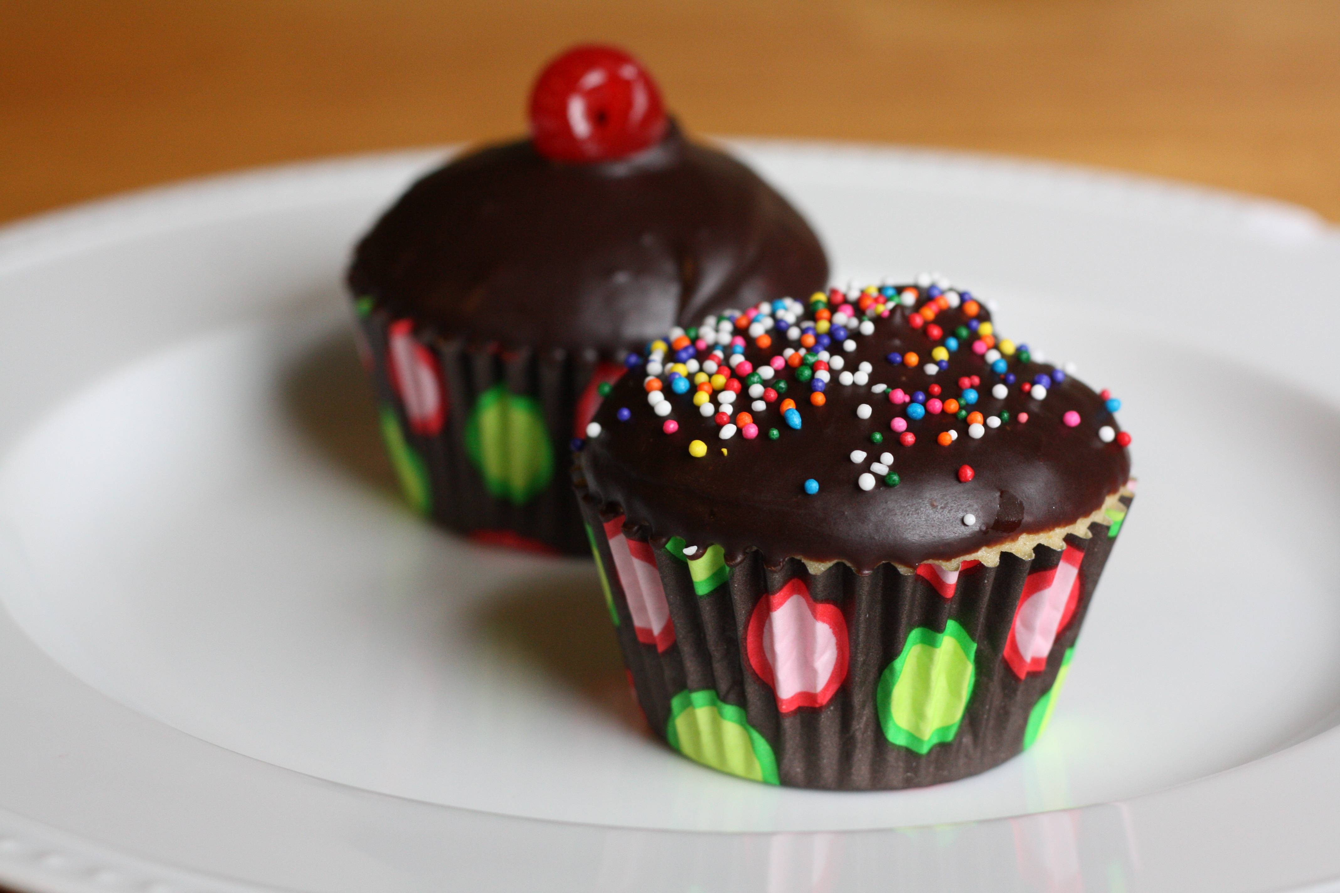Chop the semisweet chocolate. Heat the heavy cream in a small saucepan or in the microwave, just until boiling. Pour the hot cream over the chocolate, then stir until smooth. Use a spatula to spread the chocolate ganache over the top and sides of the cake. Garnish liberally with chocolate sprinkles.