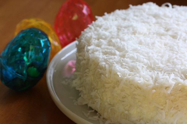 I started with a recipe for rainbow cookies, then lighted it up just a bit with an additional egg, a bit more flour, and a teaspoon of baking powder. It’s got the dense lusciousness you expect to find in a rainbow cookie, just a bit more cake-like.