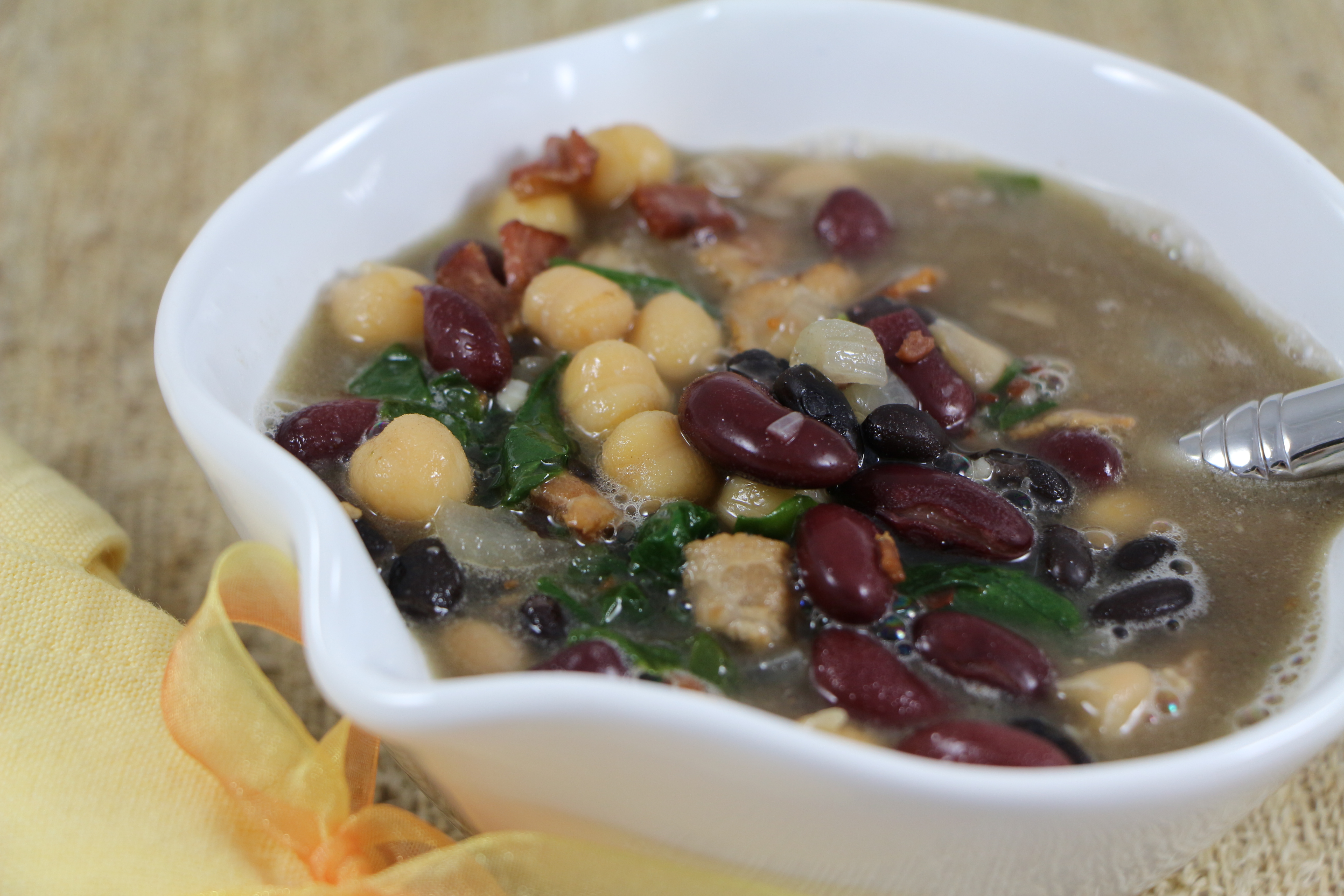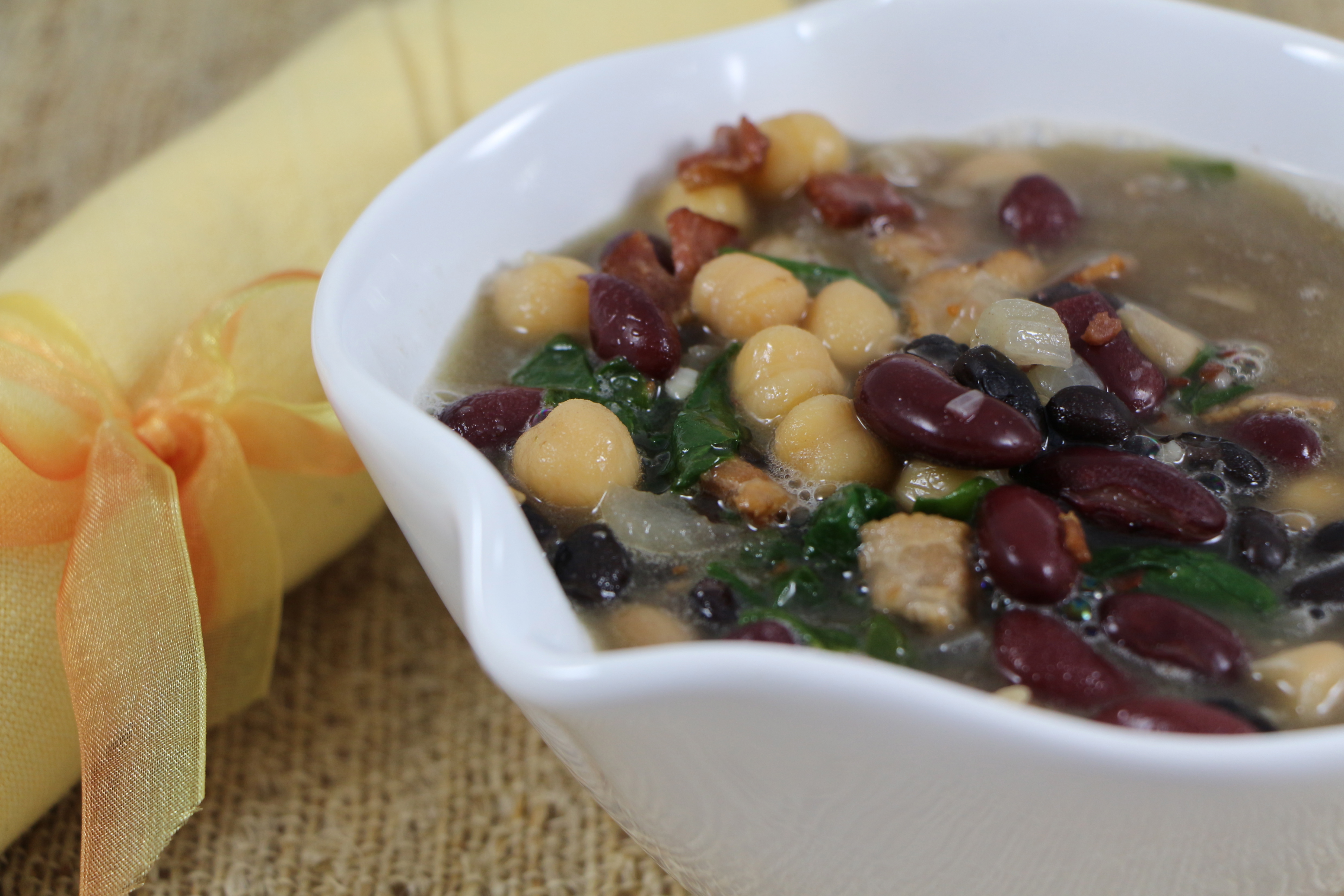 I was inspired by a friend’s recent comments about bean soup and its symbolism for prosperity in the new year. I must admit that the connection between beans and prosperity was not something I’d been aware of, but the description of her soup had me sold. This incredibly simple soup utilizes canned beans, which makes it super easy to throw together. It’s a hearty, comforting, and delicious way to celebrate the new year. Serve it with a nice, crusty chunk of French bread.