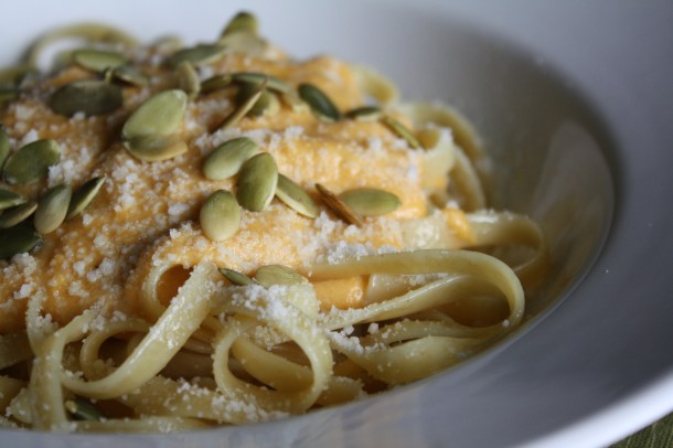 As I write, there are a few pumpkins roasting in the oven, making my home smell like autumn. I’m working on a new pumpkin recipe today. Think fresh, roasted pumpkin with rich cream, and perhaps a touch of caramel. Oh, and it’s not a dessert! Look for it later this week.