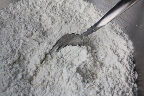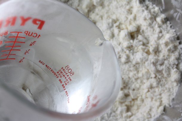 Gradually add the ice-cold water and stir with the fork until a loose dough begins to come together. You may need a little less or a little more than 1/2 cup.