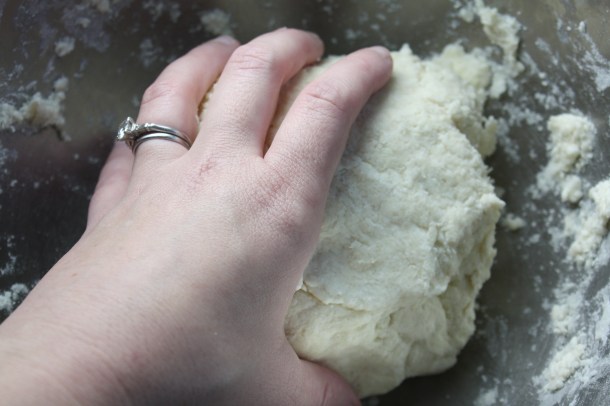 Use your hands to pull the dough together into a ball. Remember, handle the dough as little as possible during this step.