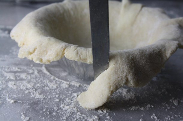 Use a knife to cut off any extra dough, leaving about an inch of dough around the perimeter.