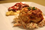 As guests arrive and mingle, have some little hors d’oeuvres available. Keep ’em light though. You don’t want your guests to overfill their bellies before dinner. And, you don’t want to be busy in the kitchen fussing over snacks as your guests are arriving, so keep it easy. The shrimp cocktail bruschetta I served during our party is an ideal option. It takes the concept of a tomato bruschetta on toasted baguette and combines it with chunks of fresh shrimp and the flavors of cocktail sauce. Simply arrange on a platter and set out for your guests to enjoy. You’ll be free to greet your guests and enjoy a cocktail as you focus on preparing the first plated dinner course.